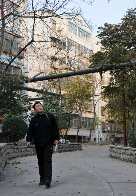 來到11號樓,胡站長并沒有直接進入用戶家,他首先爬上二樓單元屋檐上,檢查了一下進、出單元的壓力表,一切正常后,才來到4樓王大娘家。