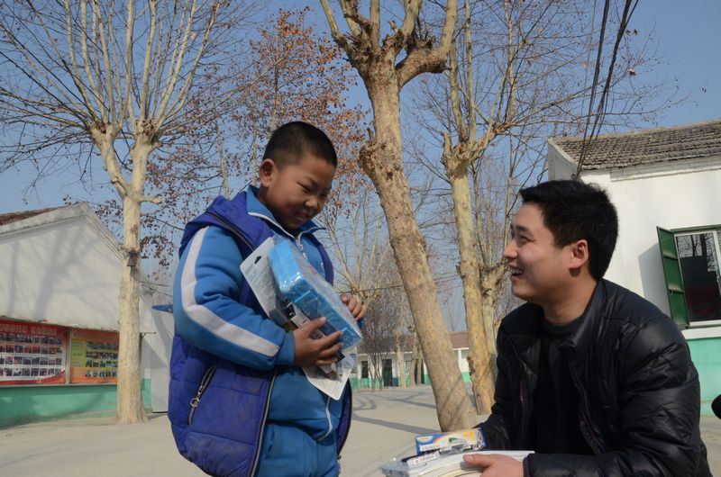 “你看,這是文具,還有籃球、足球一些運(yùn)動(dòng)玩具,都是送給你的……”看到叔叔阿姨們送來的新書包、新學(xué)習(xí)用品,小允杰很高興。