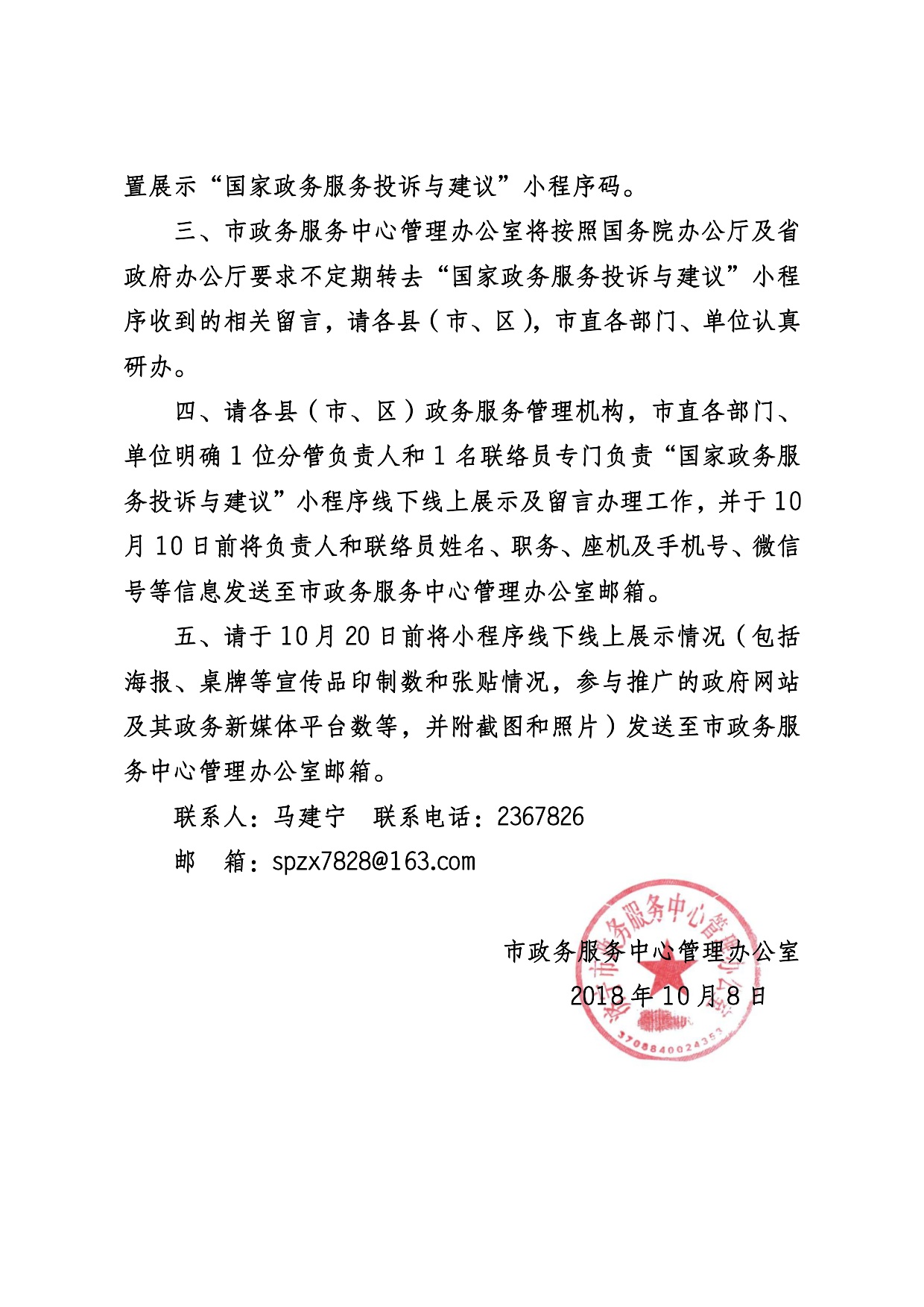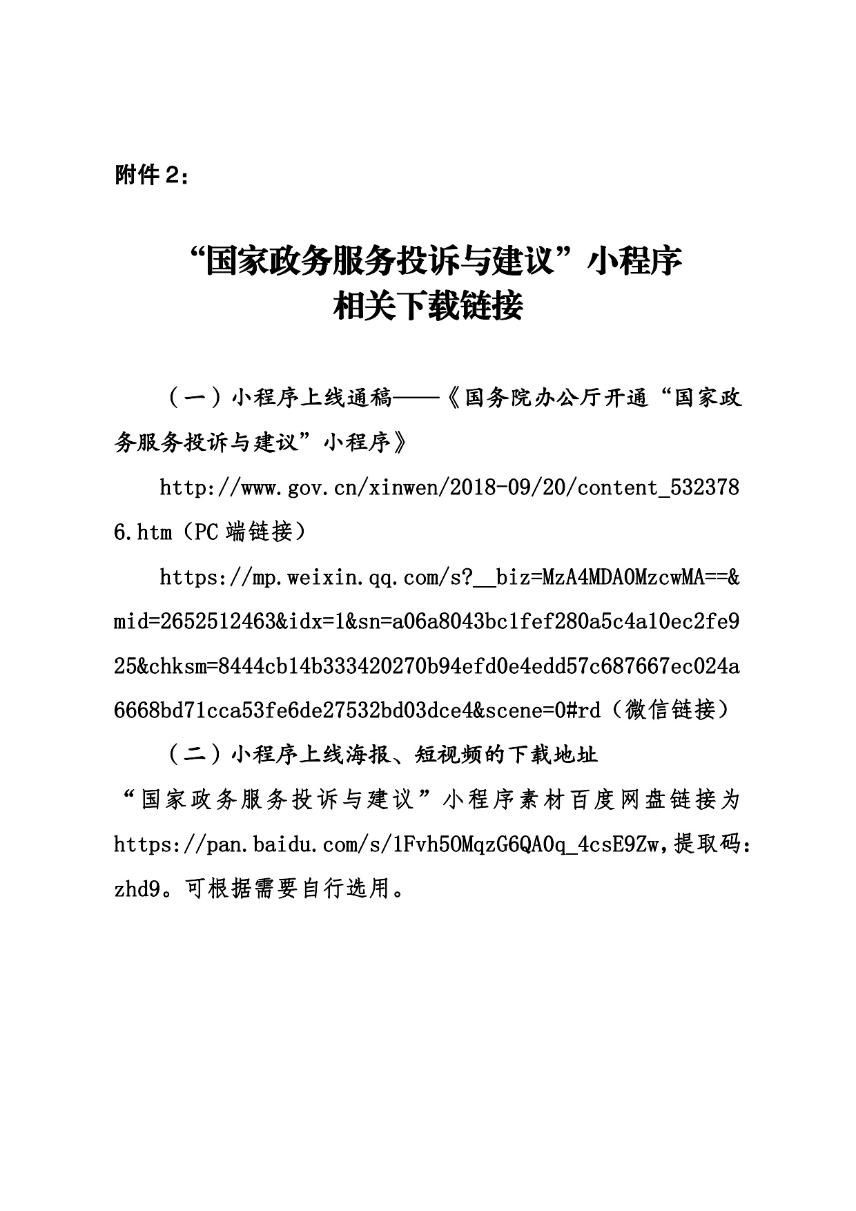 關(guān)于做好“國家政務(wù)服務(wù)投訴與建議“小程序推廣應(yīng)用工作的通知
