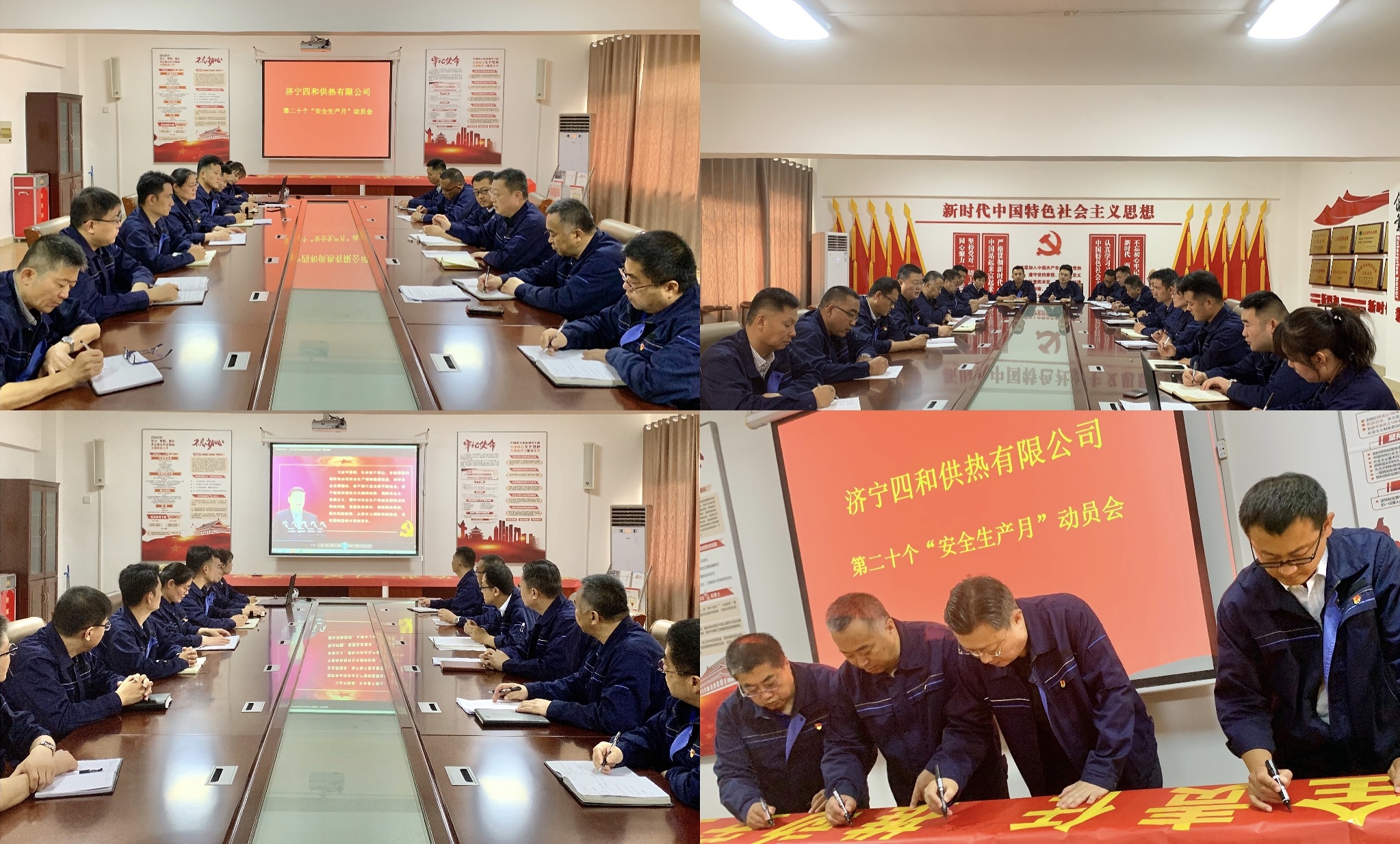 為扎實做好全國第20個“安全生產(chǎn)月”工作,切實把黨史學(xué)習(xí)教育成效轉(zhuǎn)化為安全生產(chǎn)工作動力,不斷增強和規(guī)范公司全體職工安全生產(chǎn)意識。6月1日,濟寧四和供熱有限公司在四樓會議室舉行“黨建+安全”助推“安全生產(chǎn)月”動員會。將黨建工作與安全生產(chǎn)深度融合,以黨建為抓手,凝心聚力,多措并舉力促“安全生產(chǎn)月”活動高質(zhì)量開展。黨支部書記、公司董事長李聲播出席會議并作動員講話,會議由公司總經(jīng)理張璟主持,公司各科室負(fù)責(zé)人及安全員參加會議。